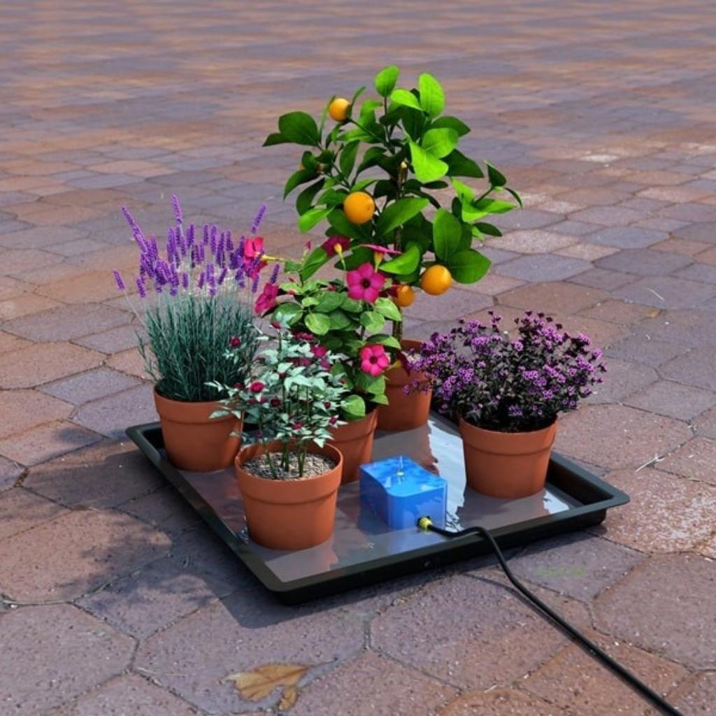 Sestavení Easy2Go je rychlé a nenáročné. Stačí mít zásobník na vodu o minimálním objemu 30 litrů a podmisku s hloubkou alespoň 30 mm. Systém lze použít v interiéru, na balkoně, ve skleníku i na zahradě.