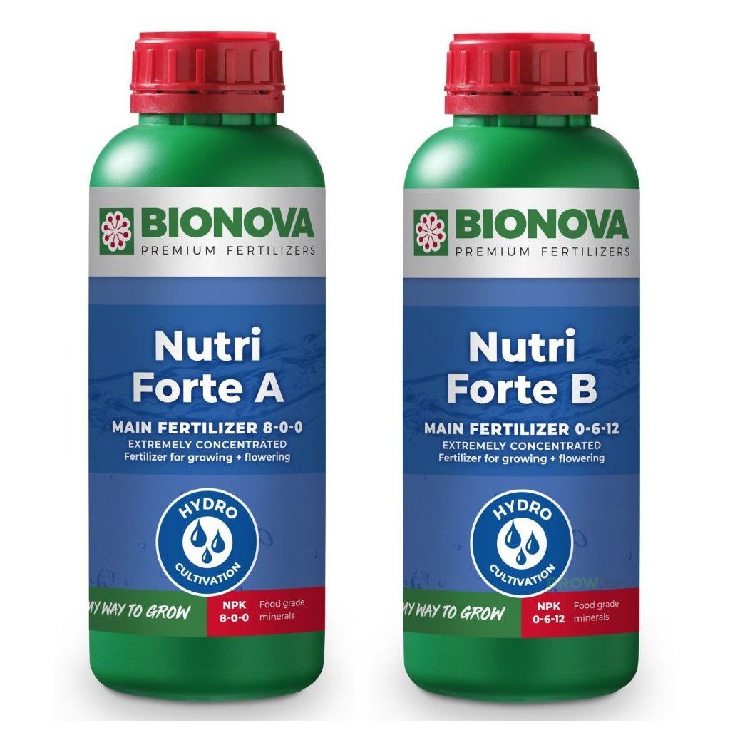 Nutri Forte A+B je cenově efektivní hnojivo pro hydroponii na umělých substrátech, jako je rockwool, mapito nebo keramzit. Obsahuje minimální množství nežádoucích solí, aby nedocházelo k ucpávání závlahových systémů, a nízký podíl těžkých kovů pro čistý konečný produkt. Obsahuje všechny důležité minerály a stopové prvky pro rychlý růst a bohaté kvetení. Rostliny jej přímo vstřebávají, což umožňuje přesnou kontrolu výživy. Nutri Forte A musí být používáno spolu s Nutri Forte B.