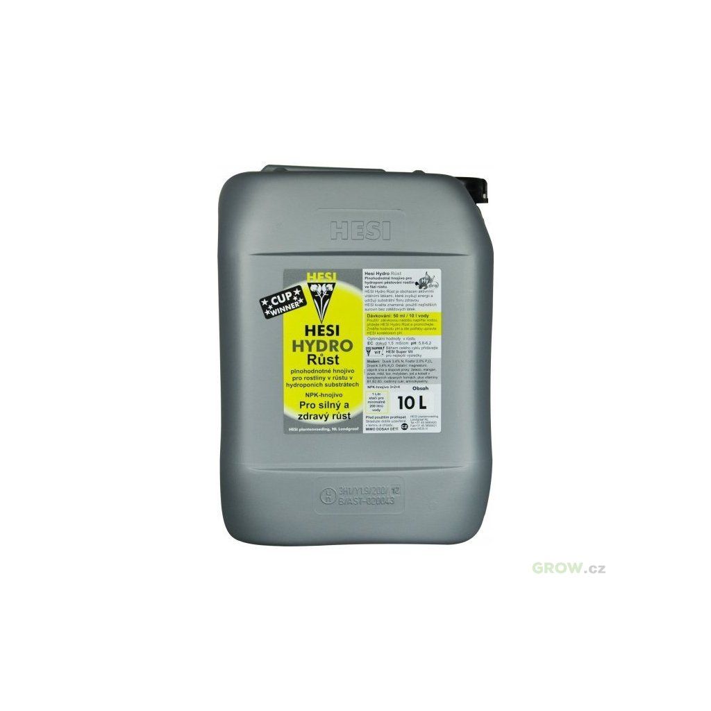 Hesi Hydro Růst, 1L je základní růstové hnojivo bohaté na základní živiny dusík, draslík a fosfor. Určeno pouze pro hydroponické nebo aeroponické pěstování. Pro maximální úspěch kombinujte s doplňky Hesi. Dávkování Hesi Hydro Growth: 5ml/1L vody.
