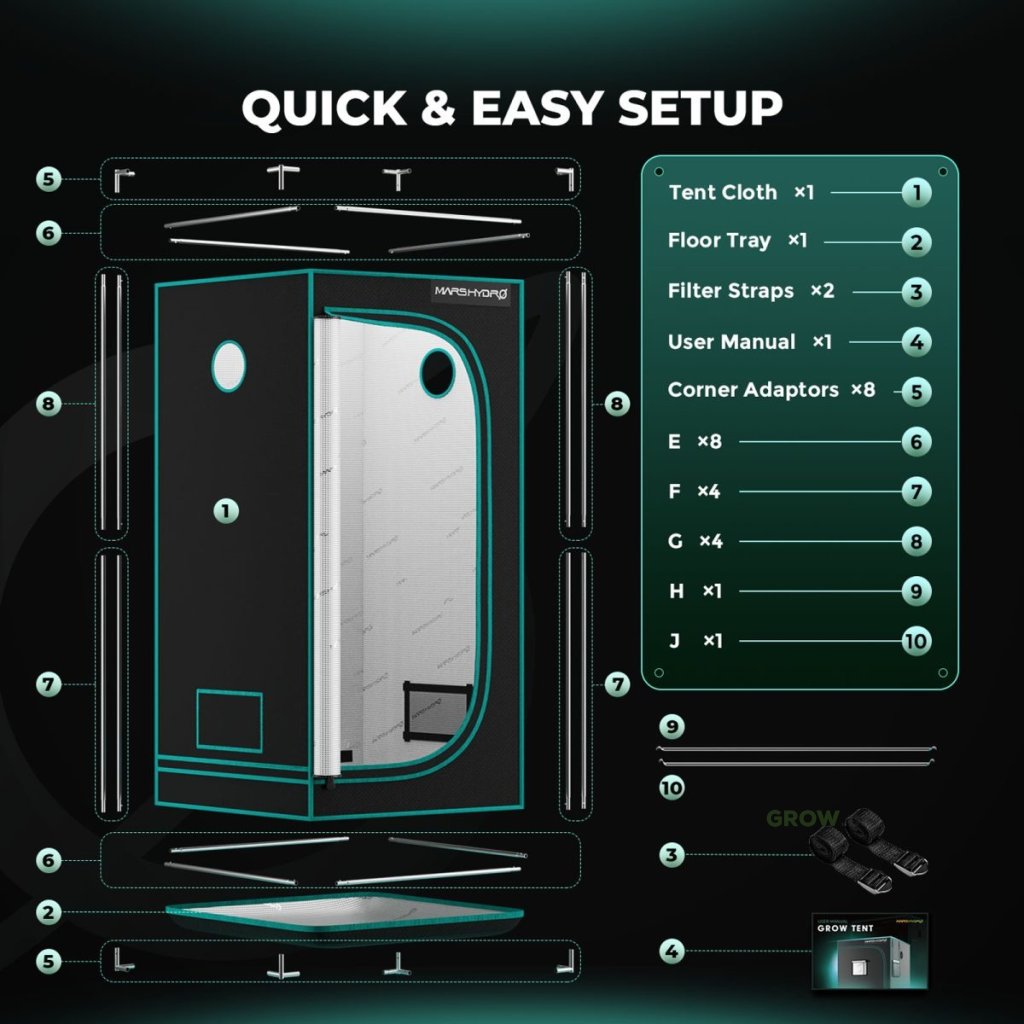 Mars Hydro FC1500 150W představuje ideální řešení pro začínající i zkušené pěstitele, kteří chtějí maximálně využít dostupný prostor pro indoor pěstování. Pěstební stan o rozměrech 80 × 80 × 160 cm poskytuje dostatek místa pro více rostlin, a umožňuje jejich pěstování po celý životní cyklus – od semínka až po sklizeň.