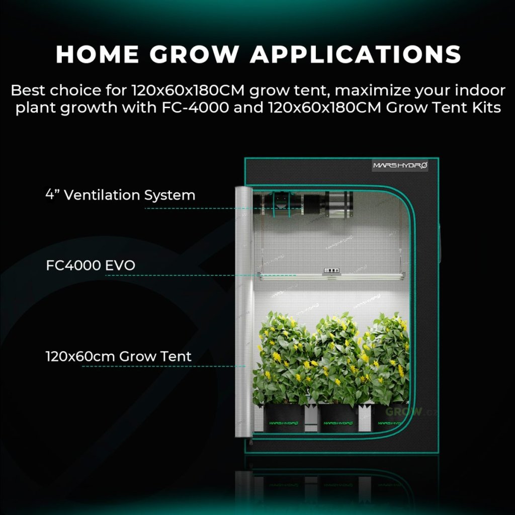 Mars Hydro FC4000 – kompletní pěstební stan 120×60×180 cm, 320W LED