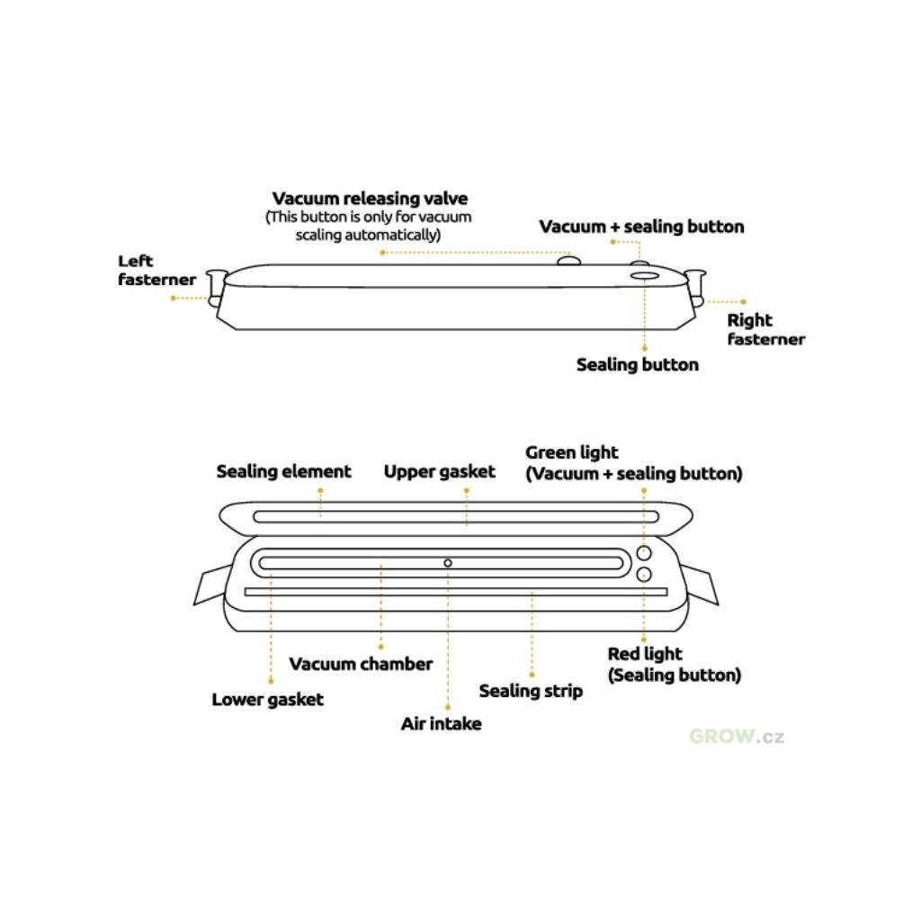 - 2 programy: vakuum + těsnění / pouze těsnění
