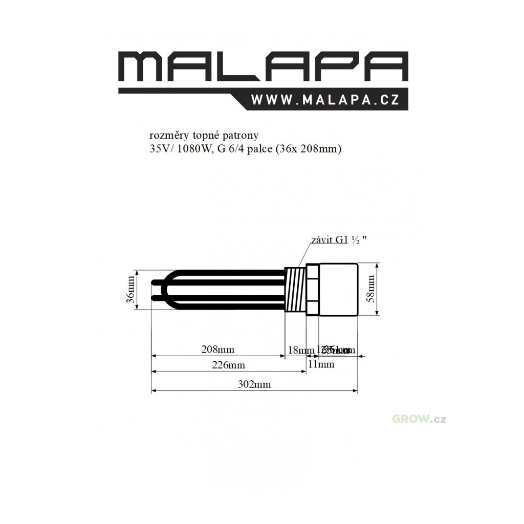 délka celková - cca. 302 mm (bez průchodky)